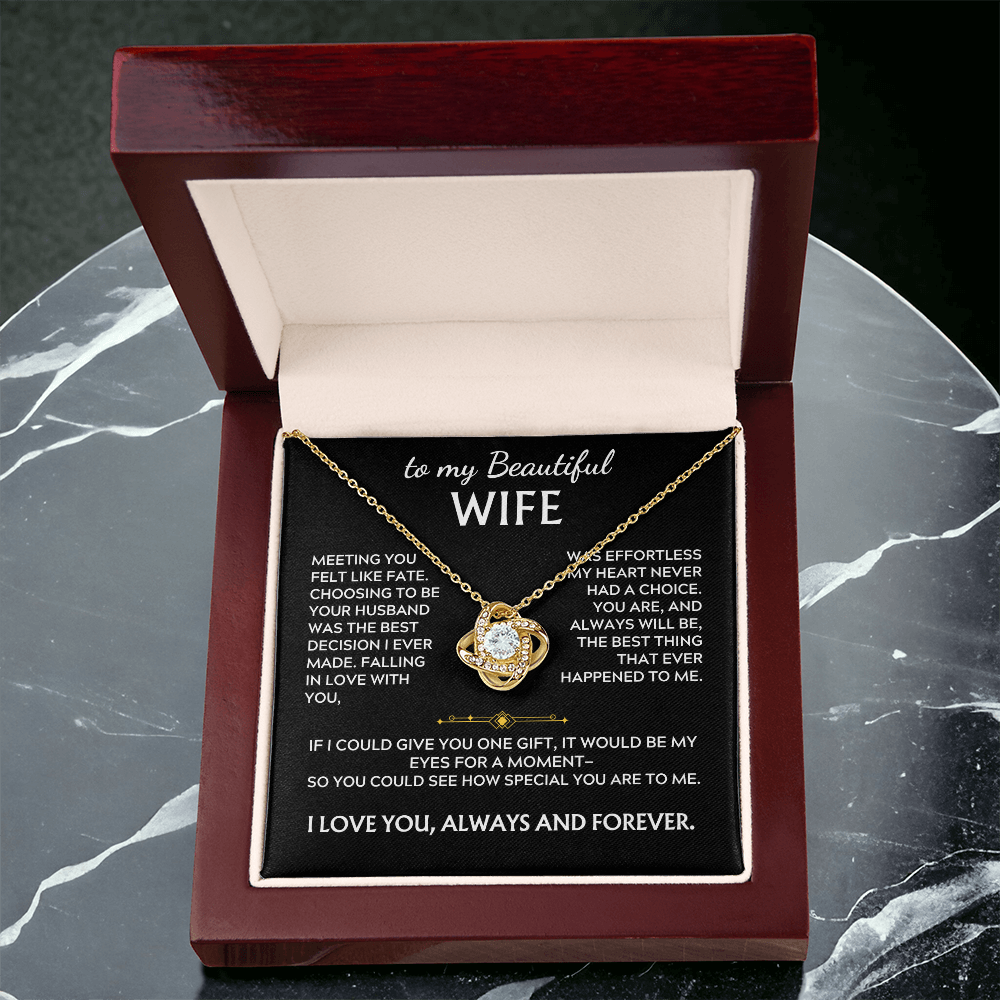 To My Beautiful Wife Love Knot Necklace, Meeting you felt like