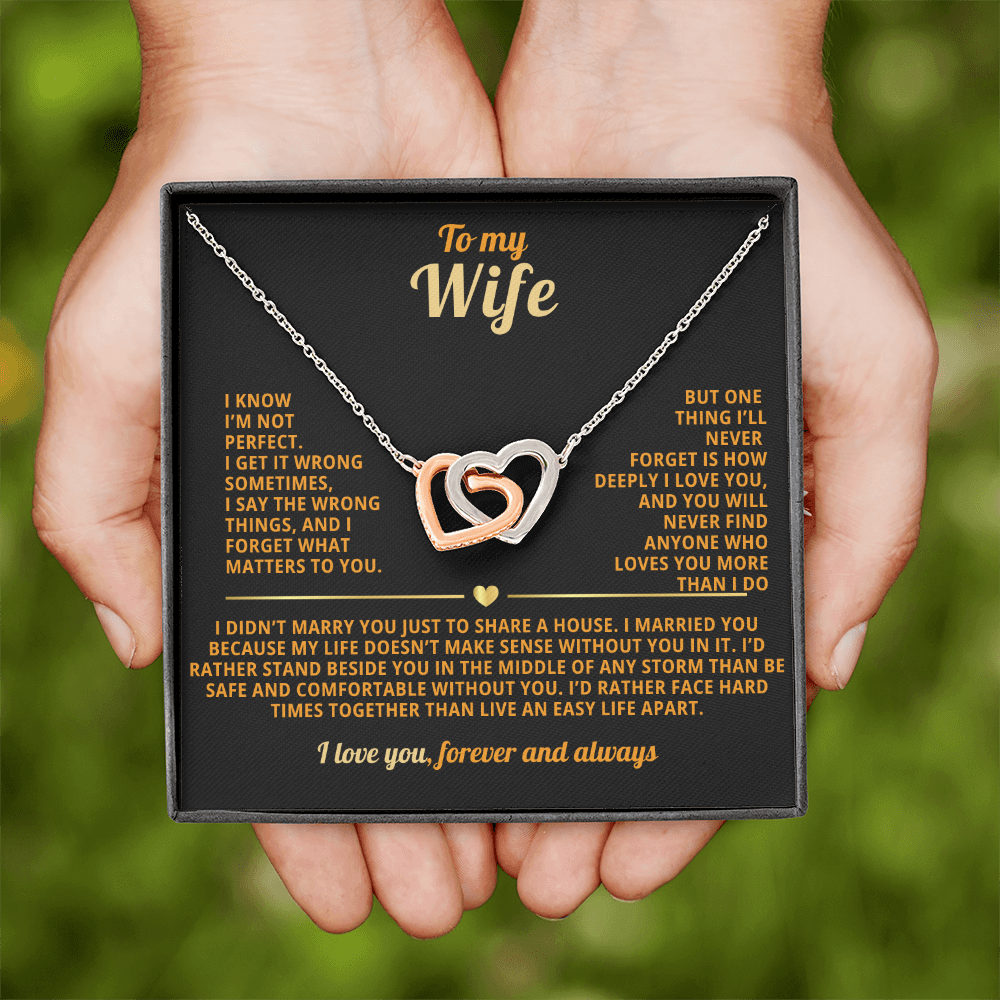 To My WIfe Interlocking Hearts Necklace I'm not perfect